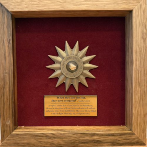 A handcrafted Nativity Star framed in gold, inspired